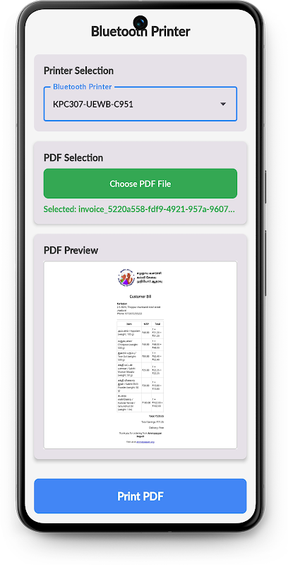 A Impressora de Etiquetas PDF é um aplicativo leve e fácil de usar, projetado para imprimir a primeira página de qualquer documento PDF diretamente em uma impressora térmica Bluetooth de 80 mm. Seja imprimindo recibos, etiquetas de remessa, recibos de código de barras ou etiquetas de produtos, este aplicativo ajuda você a fazer isso em segundos — sem necessidade de configurações complexas.