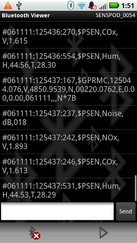 Você pode confirmar o êxito do emparelhamento, monitorar dados de texto simples de entrada e ver exatamente o que está sendo transmitido a partir do dispositivo Bluetooth.