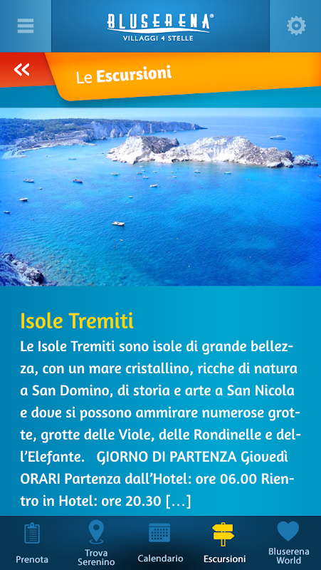 Durante la tua vacanza nei nostri villaggi avrai sempre con te il calendario delle attività del giorno, potrai conoscere la posizione in villaggio dei bambini del Serenino e del SereninoPiù, potrai consultare il catalogo delle escursioni e potrai accedere ai giochi di “Bluserena World”.