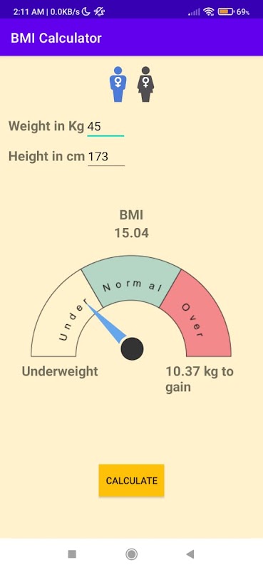 Nosso aplicativo de calculadora de IMC é uma ferramenta simples e conveniente para calcular seu Índice de Massa Corporal (IMC) e acompanhar suas metas de peso e saúde. Com apenas alguns toques, você pode inserir sua altura e peso e receber resultados instantâneos, proporcionando uma melhor compreensão de sua saúde e condicionamento físico geral. Esteja você procurando perder peso, ganhar músculos ou simplesmente manter um estilo de vida saudável, nosso aplicativo é o companheiro perfeito para sua jornada de condicionamento físico. Faça o download hoje e comece a acompanhar seu progresso em direção a uma pessoa mais feliz e saudável!