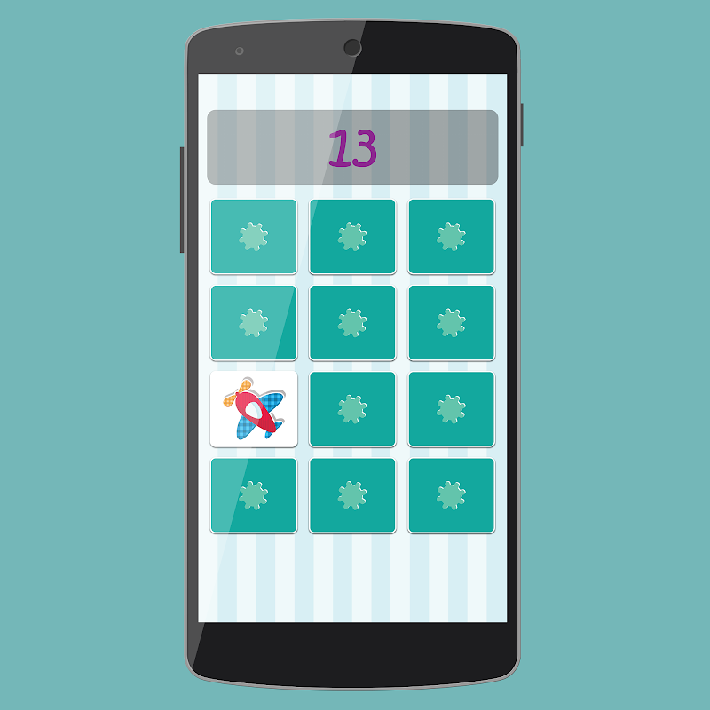 * No início, os jogadores ver as cartas viradas para baixo. Quando tocar em uma das cartas na mesa eles vão ver uma imagem objeto bonito.