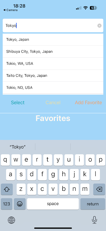 Você pode pesquisar qualquer cidade do mundo para mostrar o clima e salvar a cidade nos favoritos para acesso rápido.