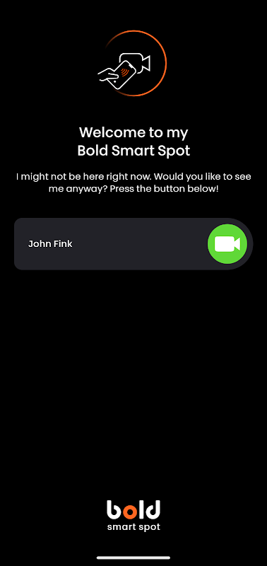 O Bold Smart Spot atua como um sistema de intercomunicação virtual. Os visitantes podem criar uma videochamada com você simplesmente segurando o telefone contra uma etiqueta NFC ou digitalizando um código QR.