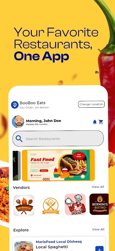 Booboo Eats é um aplicativo móvel fácil de usar, projetado para revolucionar a maneira como as pessoas descobrem e pedem comida. Nossa plataforma reúne uma grande variedade de vendedores de alimentos locais, desde pequenos restaurantes até restaurantes estabelecidos, oferecendo uma grande variedade de cozinhas e delícias culinárias.