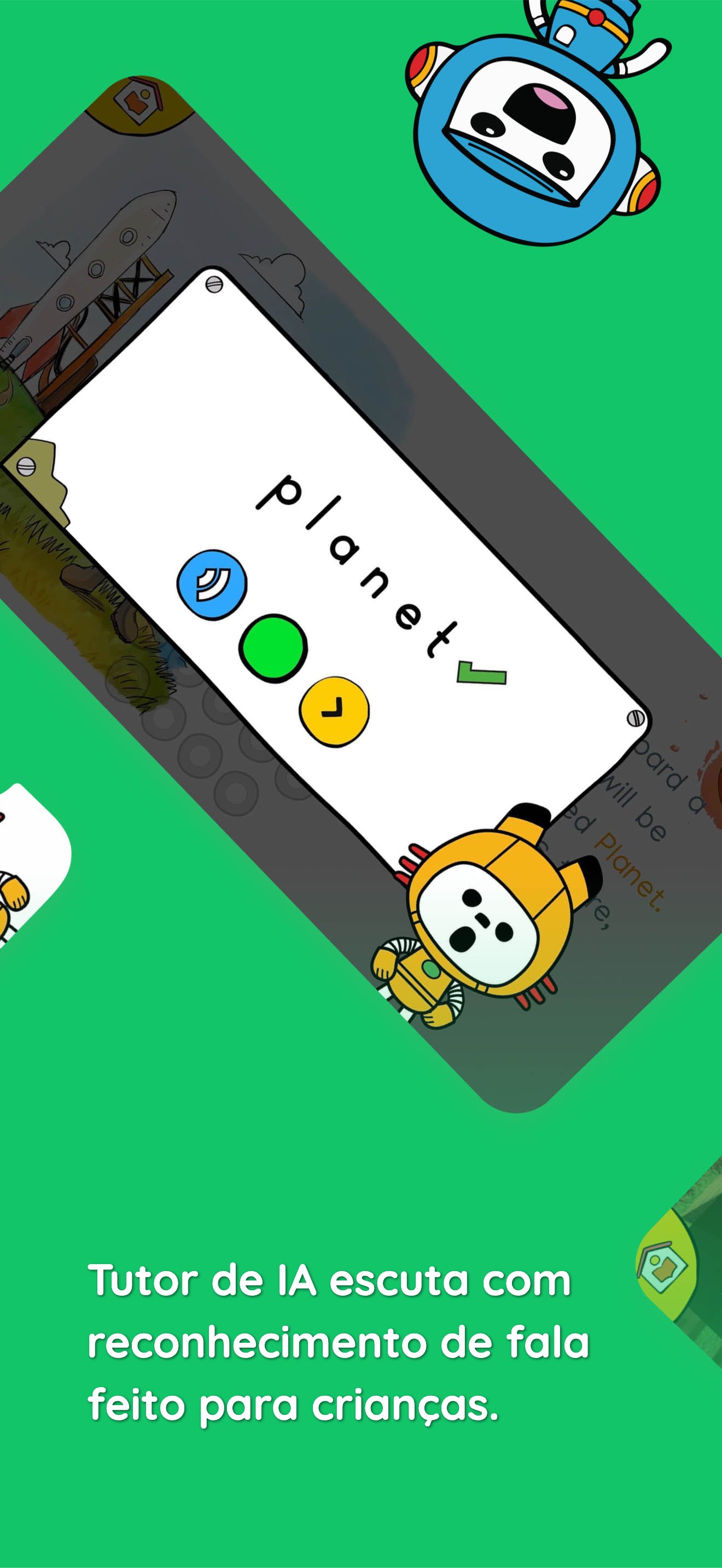 * Feedback interativo — Ajuda a melhorar a pronúncia, fluência e confiança em jovens leitores.