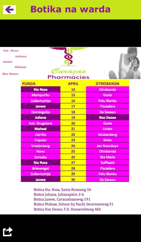 Pharmacy-drugstore on the island of Curacao. To receive information about specials and the pharmacy on duty. To have medicines delivered for free.