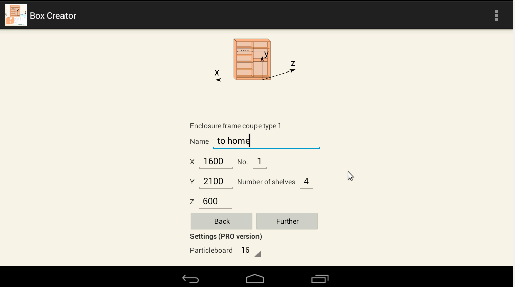 Escolha o tipo de mobília e, então, insira as dimensões gerais. O próprio programa fará o cálculo.