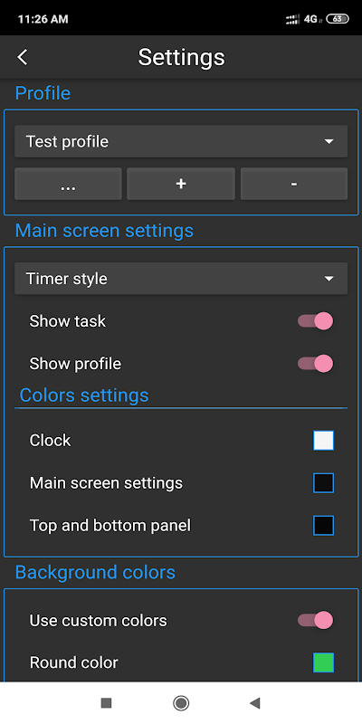 - Ativar, desativar a notificação por voz do número da rodada e a tarefa da rodada