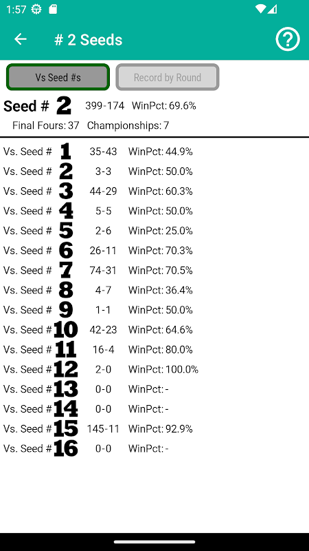 Projetado tanto para especialistas em tabelas quanto para iniciantes, o Bracket Master ajuda você a escolher a tabela ideal para todos os seus bolões de março. Use os dados abrangentes de equipes, cabeças de chave e conferências para escolher meticulosamente cada jogo do torneio ou deixe o Bracket Master preencher automaticamente sua tabela usando uma das várias metodologias de classificação de equipes vencedoras.