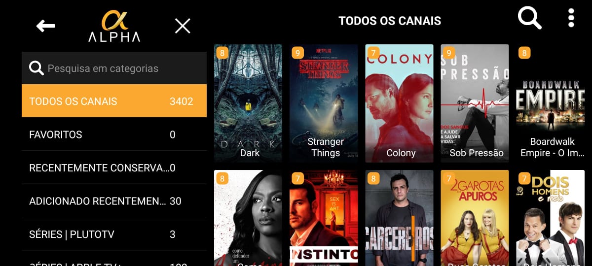 ✅ Navegar por categorias como Ação, Comédia, Drama, Suspense e Infantil.