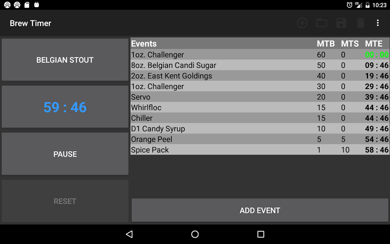 - Cada perfil da receita pode conter eventos para todos os processos de fabricação de cerveja cronometrados.
