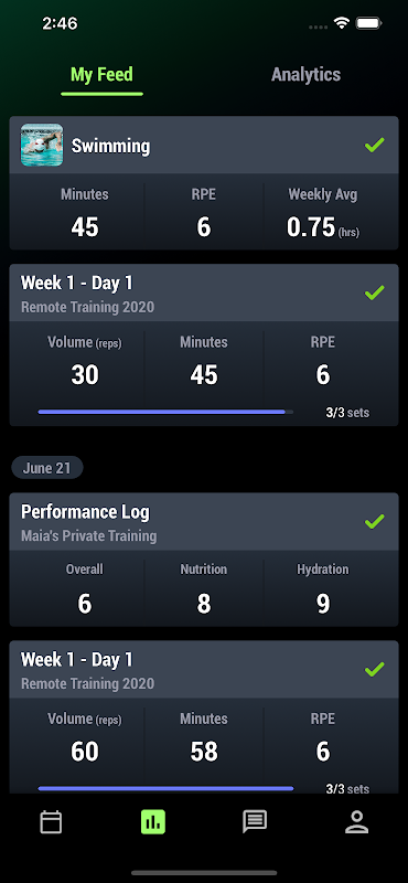 - Treino Completo - Todos os programas atribuídos aos atletas podem ser concluídos através do aplicativo de qualquer lugar.
