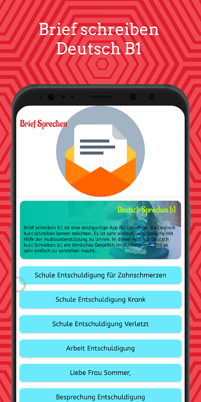 É muito fácil escrever uma carta para o exame B1 com a ajuda deste aplicativo Brief schreiben Deutsch b1. Os melhores exemplos de cartas para o exame foram dados passo a passo. Brief schreiben Deutsch b1 é um aplicativo exclusivo para alunos que querem aprender Deutsch breve schreiben.