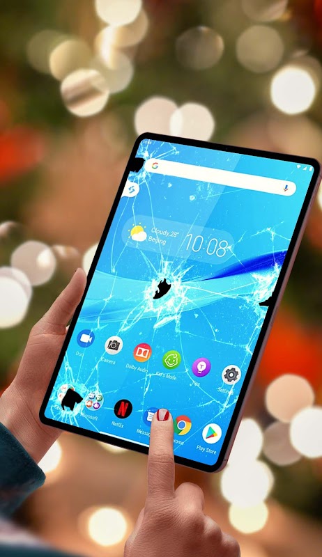 ● Cracked effect gets displayed on the top of any running apps