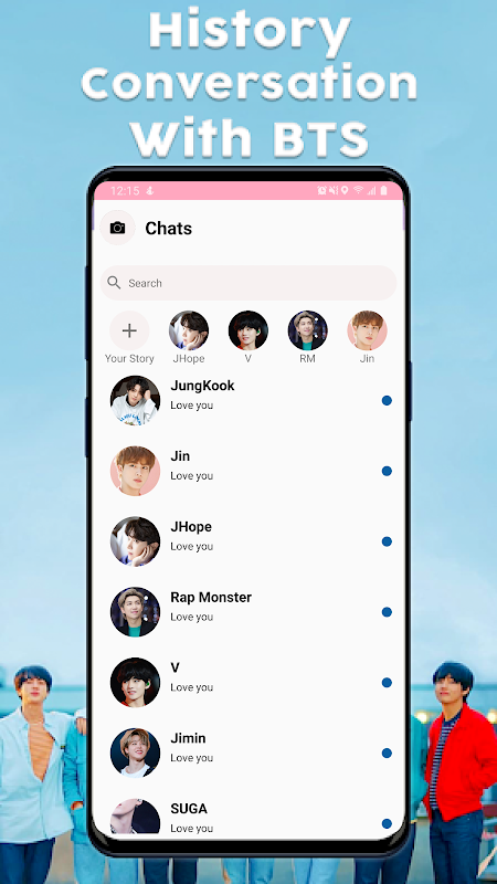 BTS Video Call - BTS Messenger 4 tiất cả mọi thứ như một ứng dụng nhắn tin bình thường, sẽ cho bạn cảm giác thật thân thuôc như đang nói chuyện thật với thần tượng của mình vậy
