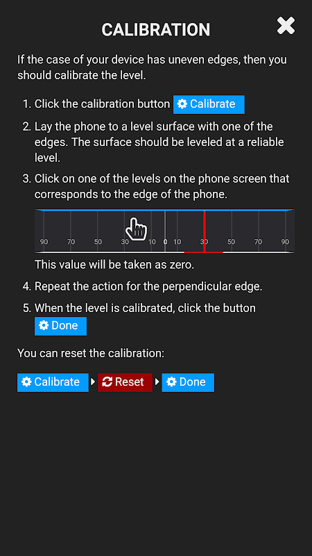Use your device as a building level to measure the degree of the surface slope. Version with no ads. The calibration function makes it possible to achieve high measurement accuracy. This tool will replace your bubble level (spirit level) and help in construction and in the home.