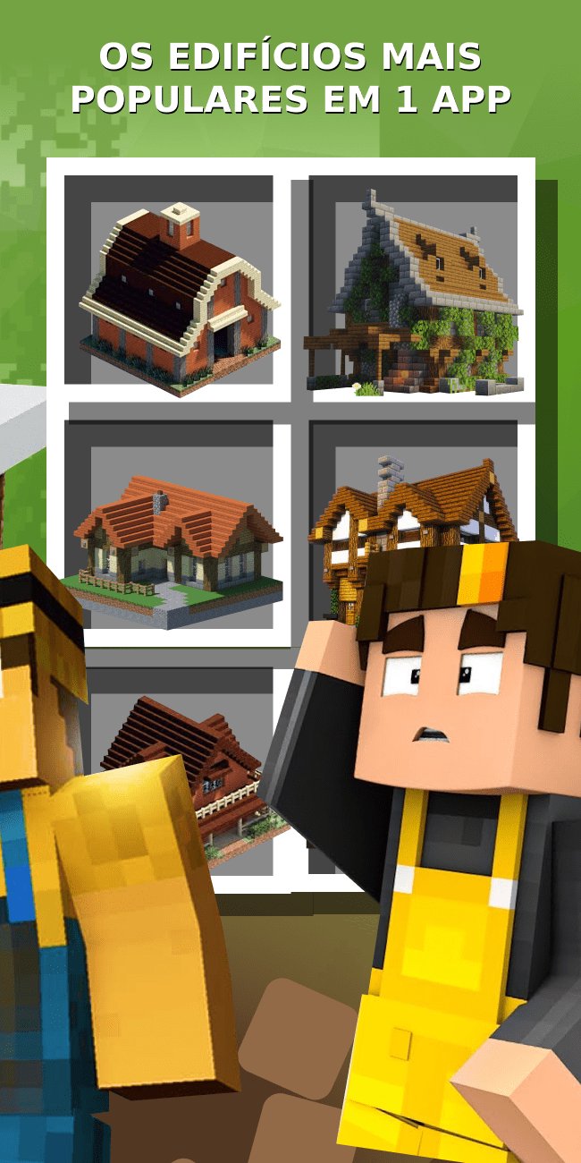 Mods de construção para Minecraft - com nosso aplicativo você pode instalar edifícios diretamente no mapa. Existem muitas categorias diferentes: casas, mansões, medievais, criações, navios, castelos, pixel art, estátuas. Este construtor cria objetos automaticamente, então você não precisa gastar muitas horas trabalhando com instruções. O objeto está exatamente onde você deseja - ajuste sua posição com o visualizador 3D. Sem ideias de construção? Basta baixar o enorme arranha-céu e mostrá-lo aos seus amigos! Adicione suas criações e transfira-as entre mundos. Crie seu mapa dos sonhos com os melhores edifícios de outros mapas!