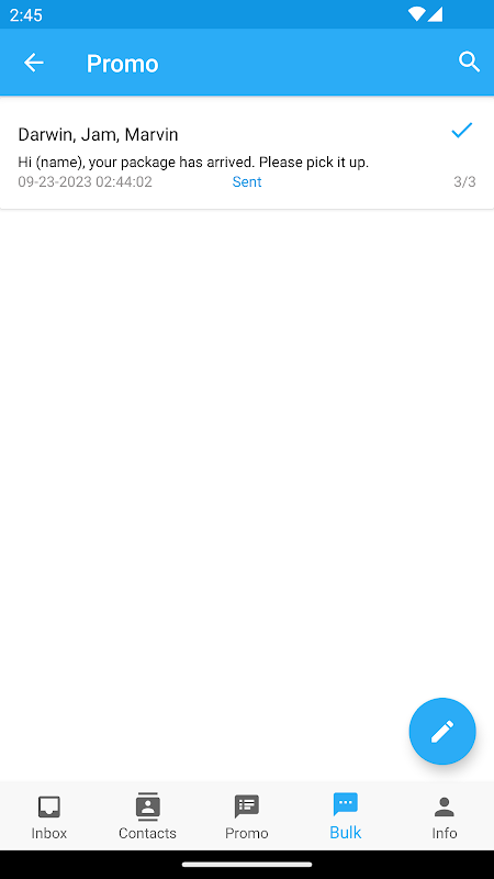 • Envie mensagens SMS em massa com apenas alguns cliques.
