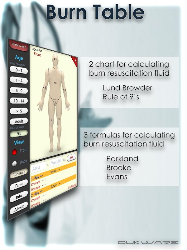 gráfico de Lund-Browder, não só o tamanho da área queimada, bem como pacientes adultos e queimar pediátrica é um dos método mais preciso para prever o grau de combustão.