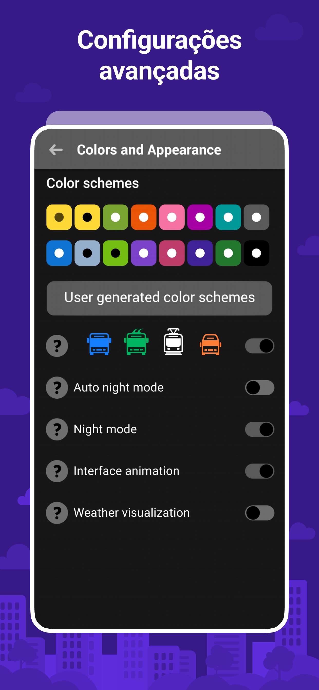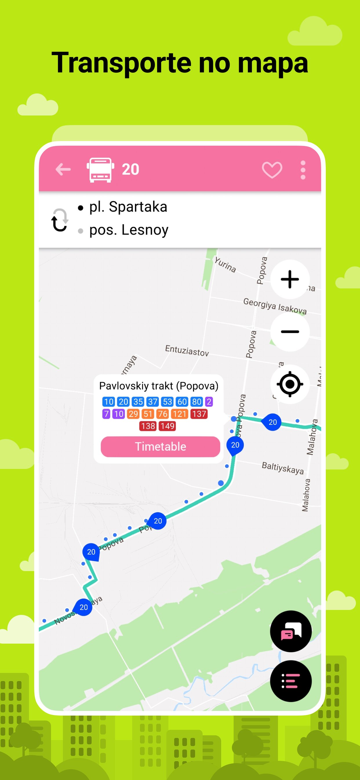 🚎 Rastreamento de diferentes tipos de transporte: ônibus, troleibus, bondes, vans (para algumas cidades).