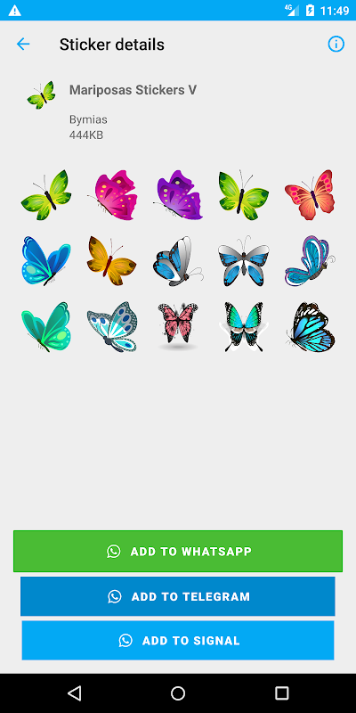 Informações sobre Sticker de Mariposas para Telegram WhatsApp Signal APK