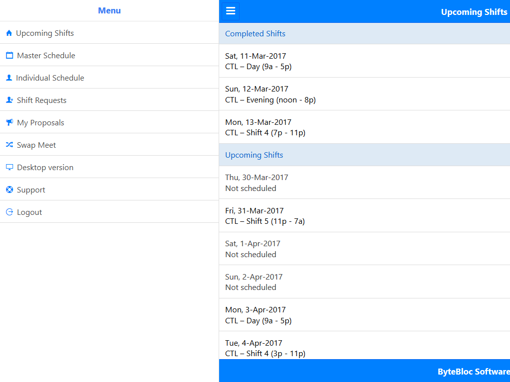 Insira suas solicitações de folga e solicitações de atribuição de turno
