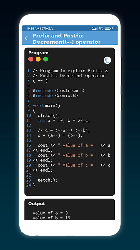 Desenvolva suas habilidades de programação por meio do aplicativo prático de exemplos C++ com saída. O aplicativo ajuda você a se tornar um especialista em programação C++, fornecendo a codificação e os exemplos necessários. É o melhor aplicativo de aprendizado de linguagem de programação.