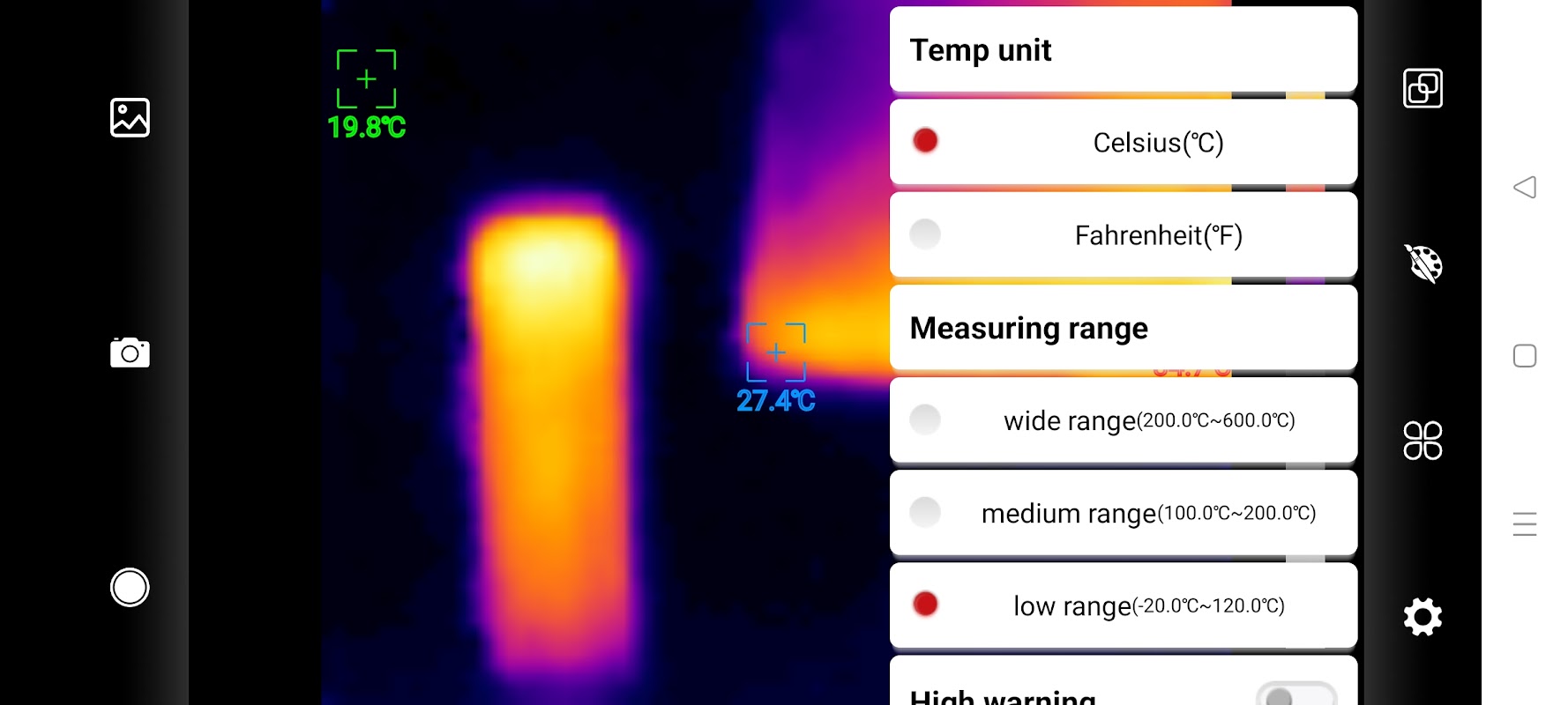 (2):Temperature Measurement Settings:Set according to the corresponding range, configure high and low-temperature thresholds, and switch temperature units.