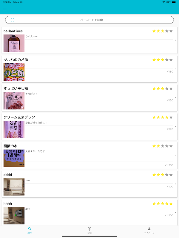 バーコードと紐づけて商品情報(テキスト、画像)を登録することができます。