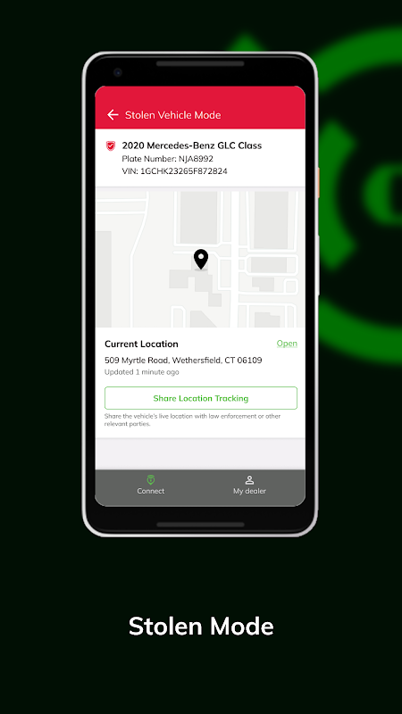Proteção e relatórios de veículos roubados: fique tranquilo com medidas de segurança avançadas e relate facilmente qualquer uso não autorizado.