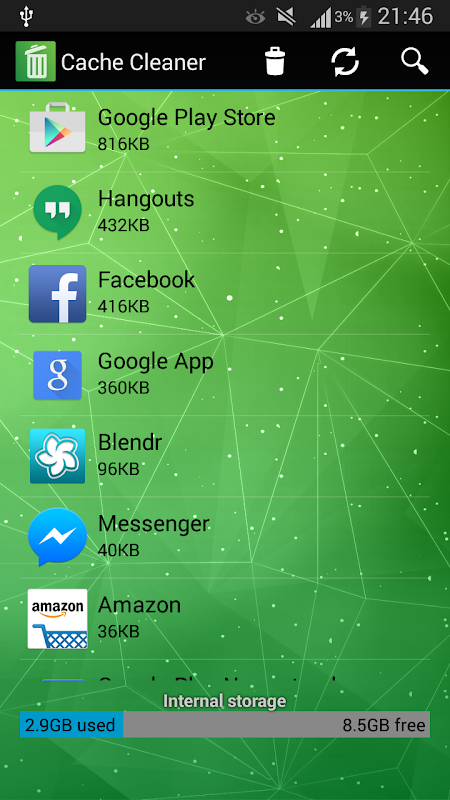 Cache Cleaner, simple, easy to operate and powerful tool for clearing all application's cached files. One Tap to clean all cached files for getting more available space.