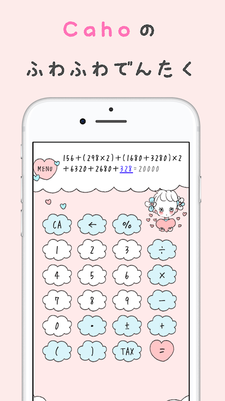 やさしい色使いとふんわりとしたタッチでカワイイ女の子を描く、大人気イラストレーター『Caho』さんのかわいい電卓アプリが完成しました!