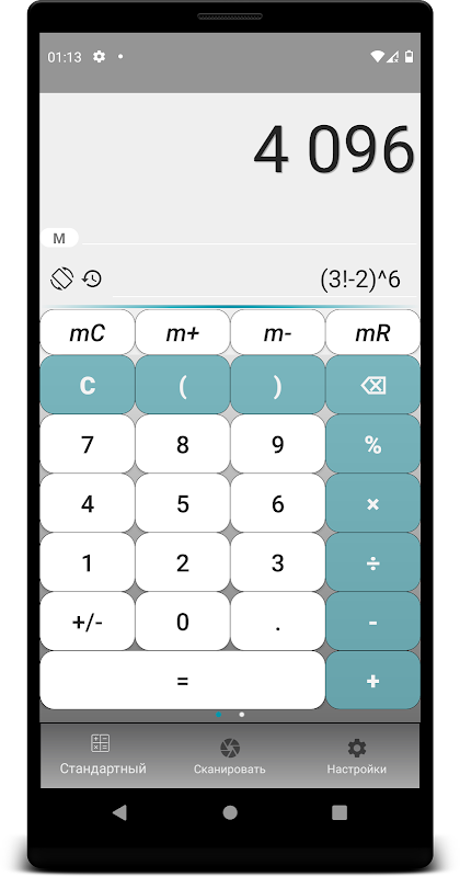 ✓ Registro e salvamento automático dos resultados dos cálculos para uso posterior clicando em "="