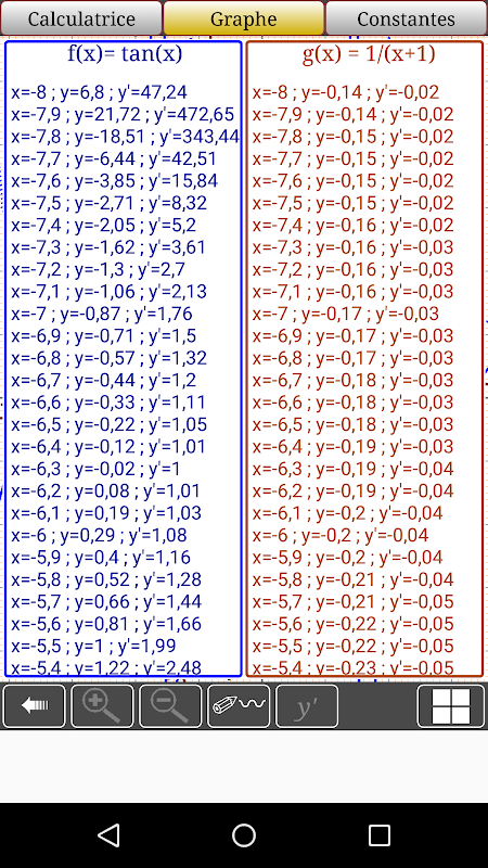 Um aplicativo para desenhar sua equação (função) Matemática e a derivada, depois exibir os valores em 0,1