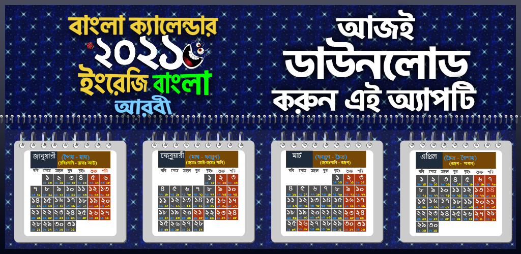 O calendário bangla 2021 é muito útil para todos. Espero que o calendário 2021 bangla seja essencial para todos. O calendário 2021 bangla tem um bom visual Calendário de Bangladesh 2021, mantenha-o no seu celular e divirta-se Calendário árabe 2021 em bengali. Calendário em inglês em bengali. Você também pode encontrar o restante do calendário de 2021 meses. Calendário em bangla 2021 também está disponível em nosso outro aplicativo Baixe este aplicativo agora.