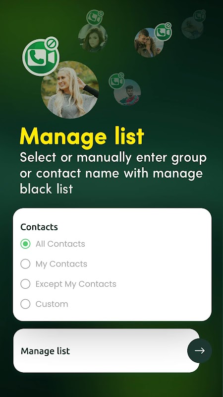 4. Lista personalizada: você pode gerar sua própria lista negra de contatos, números desconhecidos e nomes de grupos.