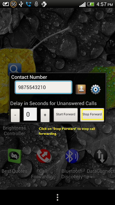Este aplicativo é muito útil para você, se você precisar de encaminhamento de chamadas frequentes para outros números. Em vez de ir para as configurações, em seguida, chamar as definições e, em seguida, chamar a frente configurações e, finalmente, configurar a sua chamada para a frente, você pode simplesmente configurar o encaminhamento de chamadas em um clique usando este aplicativo.