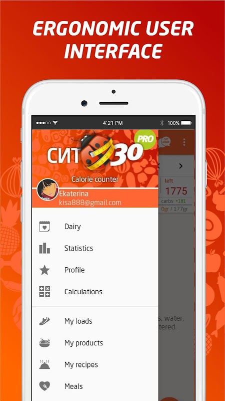 A maior base de calorias alimentares, uma interface ergonômica conveniente, entrada rápida de dados e uma opção de personalização irão ajudá-lo a controlar seu peso, se você optar por perdê-lo ou ganhá-lo.