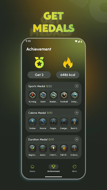 Ganhe medalhas exclusivas ao atingir objetivos específicos! Diferentes medalhas podem ser desbloqueadas por meio de check-ins consecutivos de exercícios ou quebrando recordes de duração de exercícios. Cada medalha é um símbolo de honra, inspirando você a continuar se desafiando e tornando divertido aderir a um estilo de vida saudável.