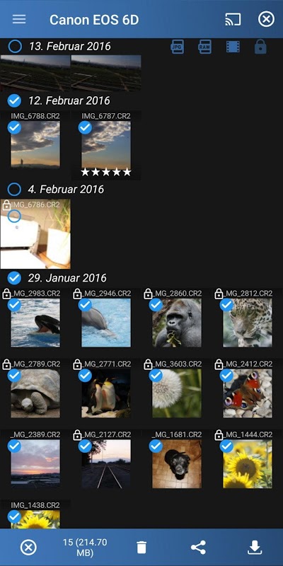 - Visualize todas as fotos na câmera em uma grade organizada.