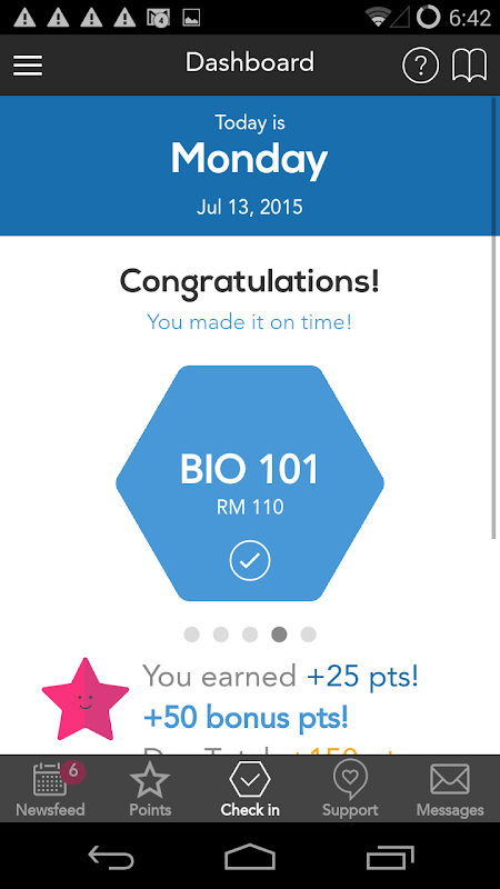 - Accumulate points and badges, representative of your accomplishments in recording attendance, leaving tips, and developing community across your campus