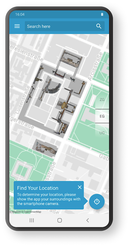 Campus Maps helps you find your way through large and complex buildings. You can test our app at the Technische Universität München Stammgelände (TUM city campus) in Munich, Germany.