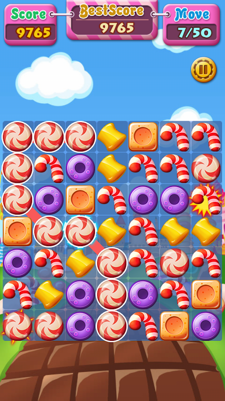 - Conecte três ou mais doces iguais para marcar pontos.