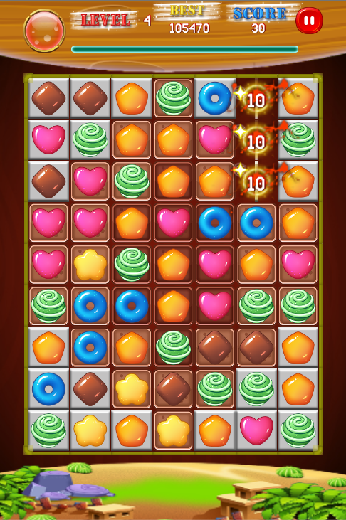 - Passe três ou mais mesmo doce para marcar pontos.