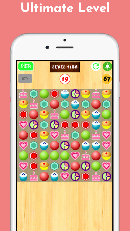 - Tap two candies one after the other to swap their positions such that maximum candies get linked in a single move.