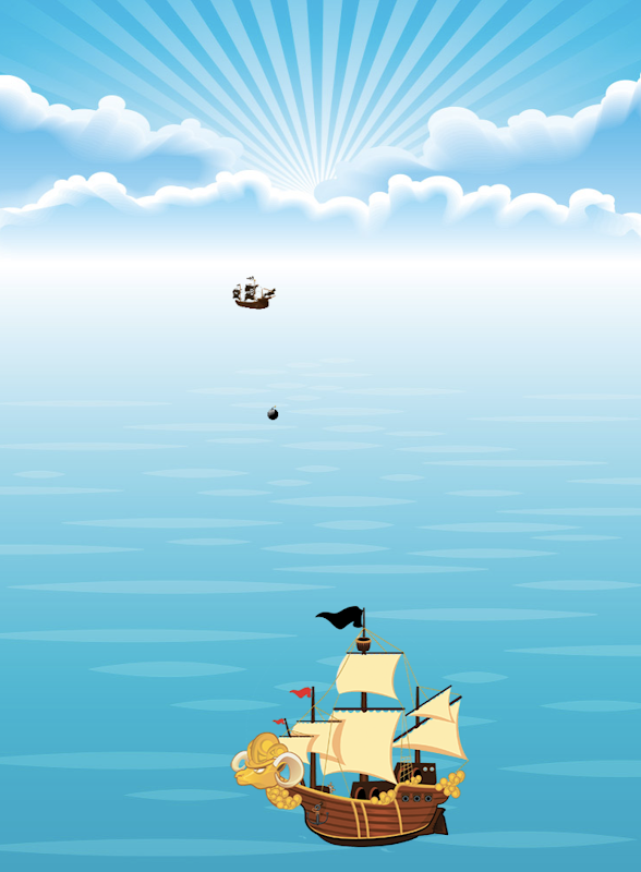 In the Cannonball Fun game a pirate ship will throw a bomb at another ship that will explode when hit.