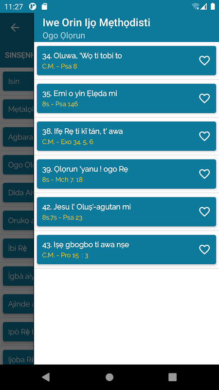 5. Defina seus hinos favoritos apenas clicando no ícone do coração na barra de menu;