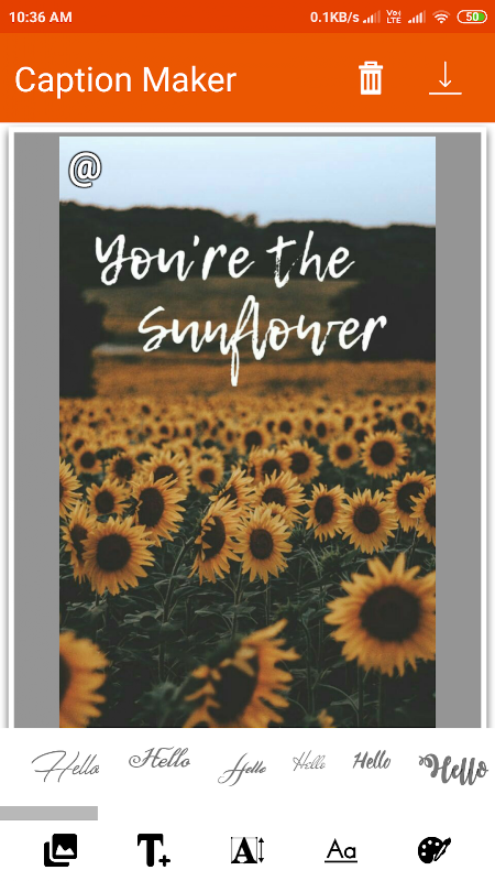 Various font colors and styles are available to make your photos memorable. You can increase and decrease font size. Let's write caption on photos!