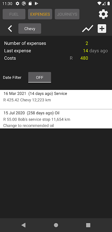 - Salva detalhes de despesas (serviços, reparos, embreagem etc.)