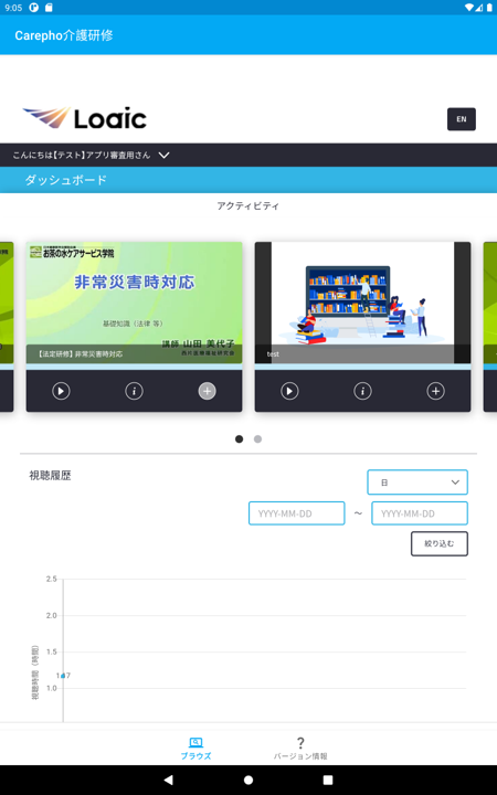 ・Este é um aplicativo de distribuição de vídeo de treinamento para empresas de assistência de enfermagem fornecido pela Logic Co., Ltd. que só pode ser usado por empresas que instalaram telefones celulares para aluguel (Carepho).